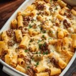 This Creamy Parmesan Beef Rigatoni is a comforting Italian-inspired pasta dish featuring tender rigatoni tossed in a rich and velvety sauce made from ground beef, heavy cream, beef broth, and a blend of Parmesan and mozzarella cheeses. Aromatics like garlic and onion are sautéed to build flavor, while tomato paste and Italian seasoning add a savory depth. Perfect for a hearty dinner, this recipe combines simple ingredients into a luscious and satisfying meal.