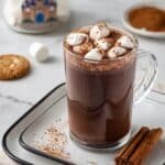 - What’s the best way to serve it for a party? Serve in heatproof glasses with a variety of toppings like whipped cream, cinnamon, marshmallows, and chocolate shavings so guests can customize their cups.