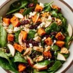 You’ll enjoy how easy it is to whip up this salad, especially with leftover shredded chicken on hand. The pumpkin seeds add a welcoming crunchy pop, and the creamy goat cheese melts gently into every forkful, making it feel like a celebration of the season in each bite. Whether as a light lunch or a colorful side dish for dinner, this salad feels like autumn on a plate.