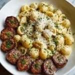 I love how the sausage crisps golden and fragrant in butter and garlic, while the pasta simmers in a creamy sauce that’s rich but not overwhelming. It’s a comforting meal that feels a bit indulgent but finishes in just about 35 minutes — perfect for those busy evenings when you want something delicious without spending all night in the kitchen.