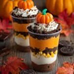 - Pumpkin Pudding Layer: Spoon the pumpkin pudding mixture on top of the Oreo crumbs in each cup.