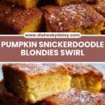These Pumpkin Snickerdoodle Blondies combine the rich, cozy flavors of pumpkin and classic snickerdoodle spices into a moist, tender blondie. Featuring a pumpkin spice swirl and a cinnamon sugar topping, they are perfect for fall treats or anytime you crave a warm, spiced dessert.