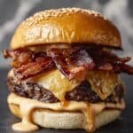 This recipe for Smash Burgers with Baconnaise Sauce offers a delectable combination of crispy smashed beef patties, melted pepper jack cheese, and a flavorful bacon-infused sauce. Featuring thinly sliced onions caramelized slightly on the griddle and toasted buns, these burgers provide a perfect balance of smoky, savory, and tangy flavors for an indulgent and satisfying meal.