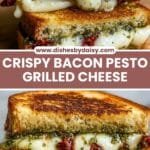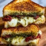 This Sun-Dried Tomato Bacon Pesto Grilled Cheese is a savory and indulgent sandwich featuring crispy bacon, tangy sun-dried tomatoes, creamy pesto, and melted mozzarella cheese, all sandwiched between golden, buttery slices of sourdough bread. Perfectly grilled to a crunchy, cheesy perfection, this sandwich is a flavorful twist on classic grilled cheese, ideal for lunch or a comforting snack.
