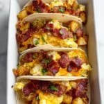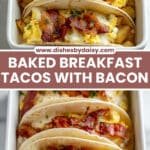These Tasty Baked Breakfast Tacos combine crispy baked bacon, seasoned sautéed potatoes, creamy scrambled eggs, and melted Monterey Jack cheese all wrapped in soft corn tortillas and baked to perfection. Ideal for a flavorful and hearty morning meal, these breakfast tacos bring a delicious Tex-Mex twist to your breakfast table.