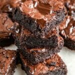 - Cool the Brownies: Remove the pan from the oven and let the brownies cool in the pan for about 10 minutes. Use the parchment overhang to lift the brownies out of the pan and place them on a wire rack to cool completely before slicing into squares and serving.